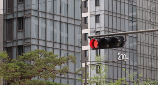 정부가 28일부터 6억원 이상 주택담보대출을 금지하는 초고강도 대출 규제를 시행하면서 서울 아파트의 74%가량이 대출액 감소가 불가피해졌다는 분석이 나와 혼란이 예상된다. 사진은 내일부터 입주가 시작되는 서초메이플 자이 앞에 빨간불이 점멸하고 있다. [이승환 기자] |