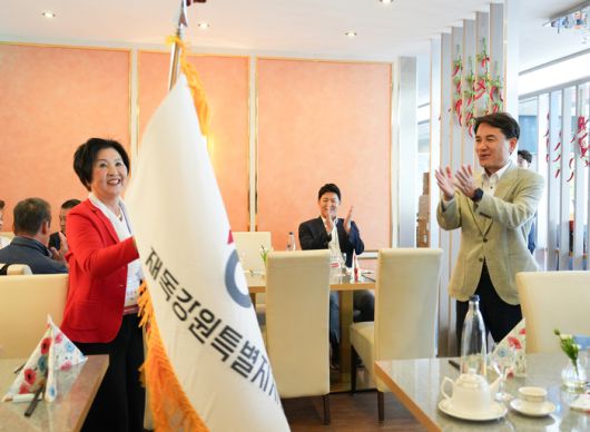도민회 김순복 회장은 “도지사님으로는 최초로 독일을 방문해주셔서 매우 감사드린다. 영월-삼척에 고속도로가 건설된다는 소식에 마음이 뭉클했다”며 “이렇게 찾아주신 지사님과 의장님을 비롯한 대표단을 환영한다. 앞으로도 고향의 발전을 계속 응원하겠다”고 말했다.