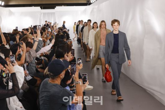 지난 26일(현지 시간), 프랑스 파리 ‘그랑 팔레 (Grand Palais)’에서 진행한 시스템·시스템옴므 2026년 봄·여름(S/S) 시즌 단독 프레젠테이션에서 모델들이 신제품을 선보이고 있는 모습. (사진=현대백화점) |