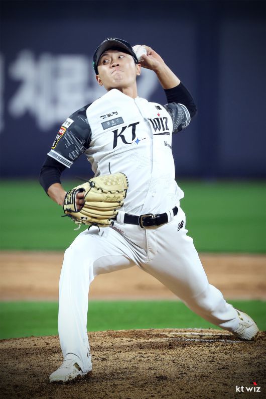 KT 위즈는 29일 부산 사직야구장에서 2025 신한 SOL Bank KBO리그' 롯데 자이언츠와의 원정경기를 앞두고 엔트리에 변화를 줬다. 좌완투수 전용주를 말소하고 우완투수 김재원을 등록했다.