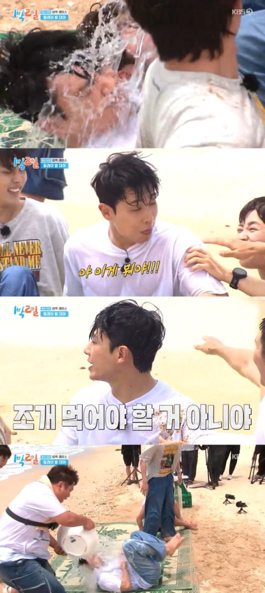 29일 오후 방송된 KBS2 예능 프로그램 ‘1박 2일 시즌4’(이하 ‘1박 2일’)에는 조개를 획득하기 위해 수조에 물을 채우는 멤버들이 모습을 보였다.