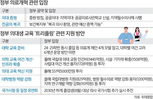 올해 복귀 의대생이 많지 않으면 내년에 24·25·26학번이 모두 예과 1학년이 돼 함께 수업을 듣는 ‘트리플링’ 문제가 불가피하다. 복귀를 원하는 의대생들은 ‘학사 유연화’를 요구하고 나섰으나, 교육부는 최근 “의대생을 대상으로 한 학사 유연화는 없다”고 선을 그었다.