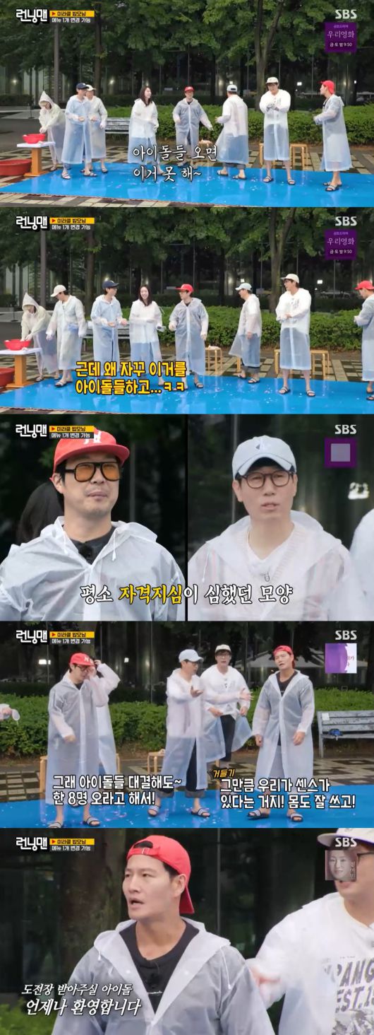 지석진은 "이거 아이돌들 와도 우리 케미를 못 이겨"라고 말했고, 하하는 "아이돌들 오면 이거 못해"라고 전했다.