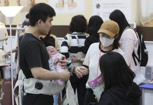 5일 서울 강남구 코엑스에서 열린 코베 베이비페어에서 관람객들이 아기용품을 살펴보고 있다. 2023.10.05 [서울=뉴시스] |