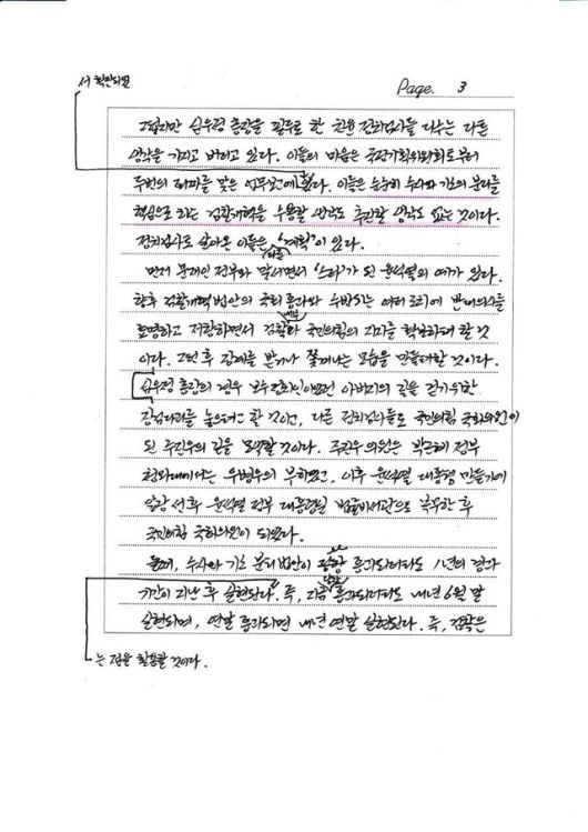 조국 전 조국혁신당 대표가 지난 27일 쓴 ‘친윤 정치검사들은 ‘계획’이 있다’라는 제목의 옥중편지. 황현선 혁신당 사무총장 페이스북 |