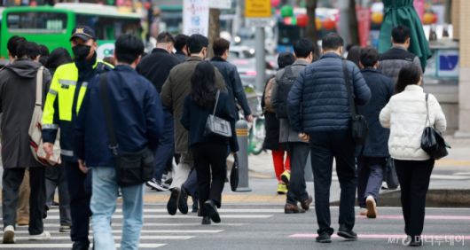 지난 4월 14일 오전 서울 종로구 광화문 네거리에서 직장인들이 출근길을 서두르고 있다. /사진=뉴스1