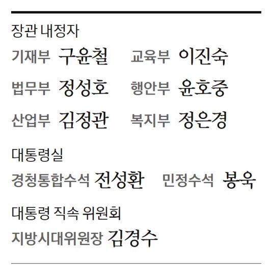 이재명 대통령이 29일 경제사령탑인 부총리 겸 기획재정부 장관에 구윤철 서울대 경제학부 특임교수를 내정했다. 법무부 장관과 행정안전부 장관에는 정성호·윤호중 더불어민주당 의원을 각각 발탁하고, 대통령실 민정수석에 봉욱 김앤장 법률사무소 변호사를 임명했다. 핵심 공약인 검찰·경찰·사법 개혁을 맡을 인사들의 윤곽이 드러나면서 관련 논의에 속도가 붙을 것으로 보인다.