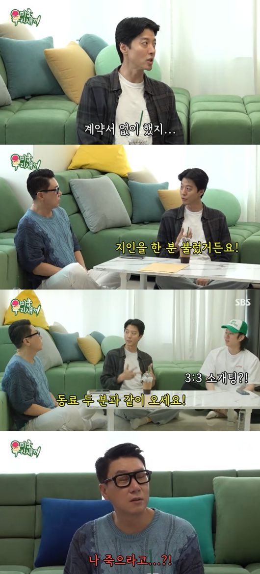 이에 김희철은 "와 3대 3 소개팅"이라고 환호했고, 이상민은 "나 죽으라고?"라고 어이없음을 표해 웃음을 안겼다.