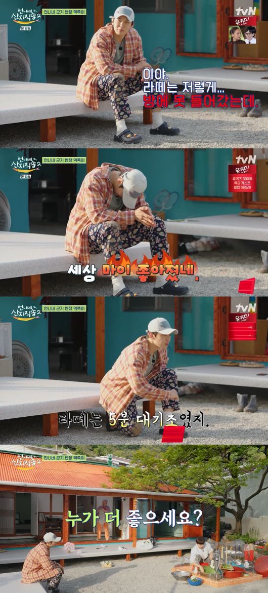 박준면은 환히 웃는 덱스를 보며 염정아에게 "쟤 왜 저러고 있는거야"라고 전해 웃음을 안겼다.
