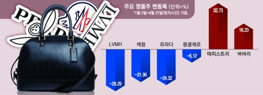 반면 중저가 명품인 코치의 모회사 태피스트리는 이 기간 32.73%의 수익률을 기록했다. 버버리도 16.23% 상승했다.