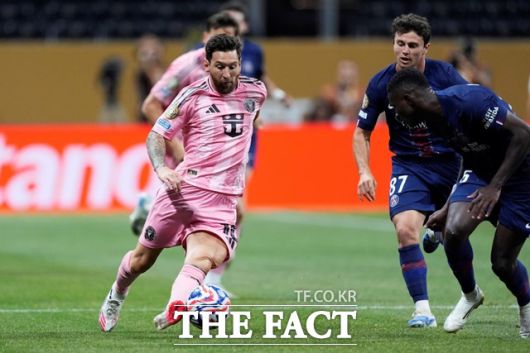 [더팩트 | 박순규 기자] '꿈의 매치'가 성사됐다. 한국 축구의 간판 이강인(24)과 세계 최고의 축구 스타 리오넬 메시(38)의 첫 대결이 그라운드에서 펼쳐졌다. 이강인은 '메시 더비'로 기대를 모은 화제의 대결에서 후반 교체멤버로 나서 21분 동안 메시와 그라운드 대결을 펼치며 팀 승리에 힘을 보탰다.