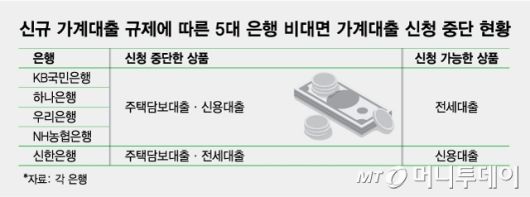 신규 가계대출 규제에 따른 5대 은행 비대면 가계대출 신청 중단 현황/그래픽=최헌정