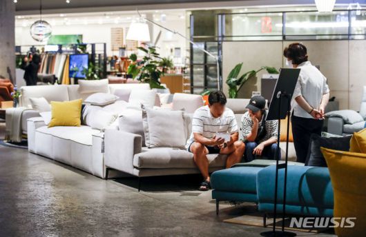 [서울=뉴시스] 정병혁 기자 = 2023년 7월 13일 서울시내 대형쇼핑몰을 찾은 시민들이 소파 등 가구 제품을 살펴보고 있다. (사진은 기사와 관련이 없습니다.) 2025.06.27. jhope@newsis.com