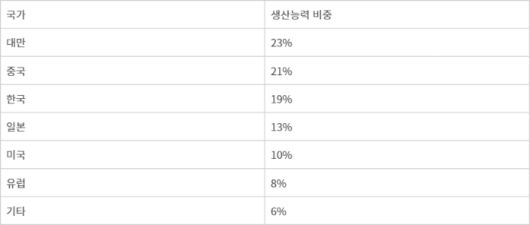 시장조사업체 욜 그룹은 최근 발간한 '반도체 파운드리 산업 현황 보고서'에서 지난해 중국이 세계 파운드리 생산능력 중 21%를 차지했다고 밝혔다. 1위 대만 23%에 이은 두 번째다. 한국은 19%로 3위를 차지했고, 일본(13%), 미국(10%), 유럽(8%) 등이 뒤를 이었다.