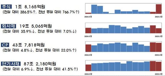 5월 국내 기업들의 직접금융을 통한 자금조달 현황./금융감독원 |
