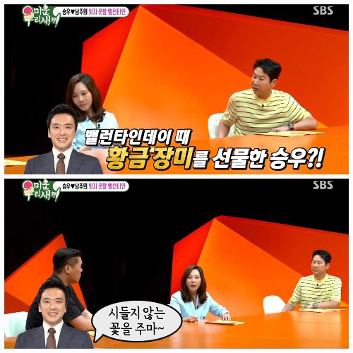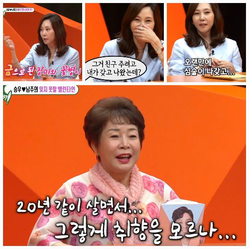 배우 김남주가 남편 김승우와의 일화를 솔직하게 털어놨다. 29일 방송된 SBS ‘미운 우리 새끼’에서 김남주는 밸런타인데이에 남편에게 받은 특별한 선물에 대해 이야기했다.