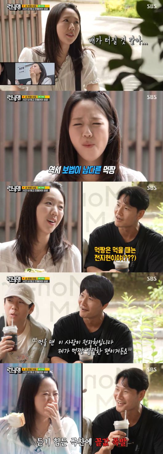 특히 김종국은 샌드위치를 먹는 지예은을 보며 "먹짱! 먹짱은 먹을 때는 전지현이야"라고 칭찬을 날려 눈길을 끌었는데, 이어 지예은은 "진짜요?"라며 환히 웃었다.