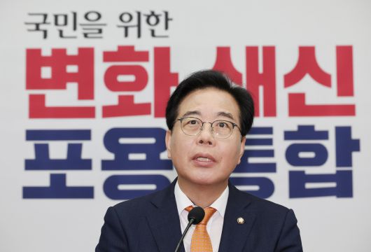국민의힘 송언석 원내대표가 지난 27일 서울 여의도 국회에서 열린 의원총회에서 발언하고 있다. 연합뉴스 |