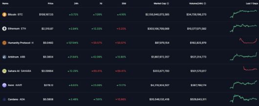 알트코인(비트코인 이외의 가상자산) 대표격인 이더리움은 24시간 전보다 2.84% 오른 2510.87달러(약 만원)에 거래 중이다. 일주일 전보다는 12.33% 급등했지만, 한 달 전보다는 0.25% 내린 수준이다.
