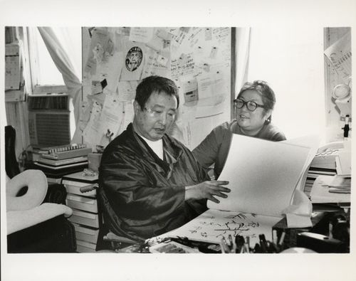 마크 패츠폴, 베니스비엔날레 작품 설치 협의 중인 백남준, 1993 |