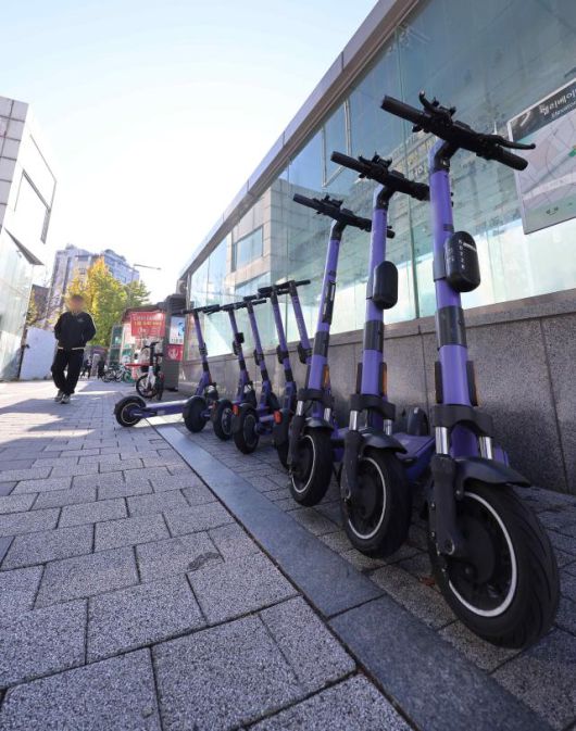 서울 시내에 전동킥보드들이 주차돼 있다. [사진=연합뉴스] |