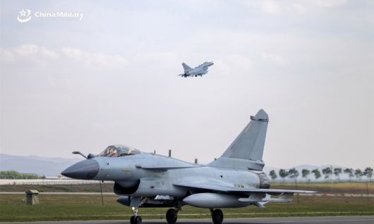 비행 훈련 중인 중국 J-10 전투기. 글로벌타임스 홈페이지 캡처 |