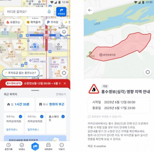 카카오모빌리티는 과학기술정보통신부, 환경부, 부산지방국토관리청, 한국지능정보사회진흥원(NIA)과 협업해 '카카오내비'에서 장마철 홍수 위험 정보의 실시간 안내를 제공한다고 30일 밝혔다.