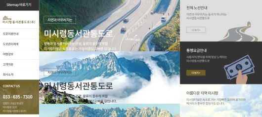 미시령동서관통도로(주) 인터넷 홈페이지 초기화면 갈무리. |