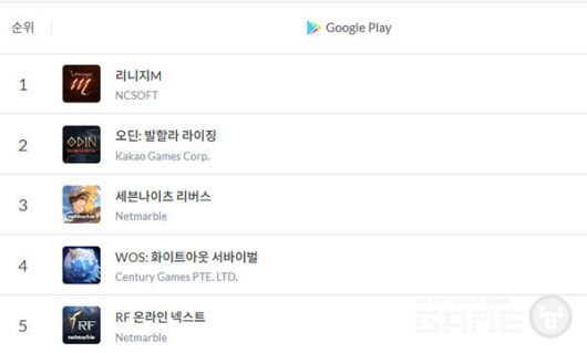 오딘 발할라 라이징, 구글 플레이 매출 순위 2위 /모바일인덱스 |
