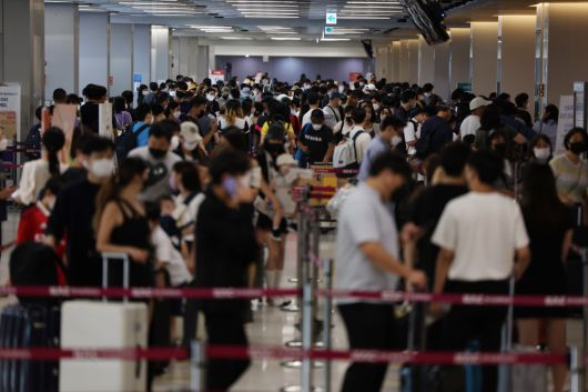2022년 8월 서울 강서구 김포공항 국내선 청사가 여행객들로 붐비고 있다. 연합뉴스