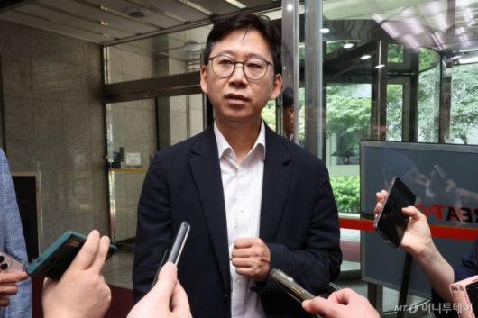 [서울=뉴시스] 권창회 기자 = 배경훈 과학기술정보통신부 장관 후보자가 25일 오전 서울 종로구 광화문 우체국에 마련된 인사청문회 준비 집무실로 출근하며 취재진 질의에 답하고 있다. 2025.06.25. /사진=권창회 |