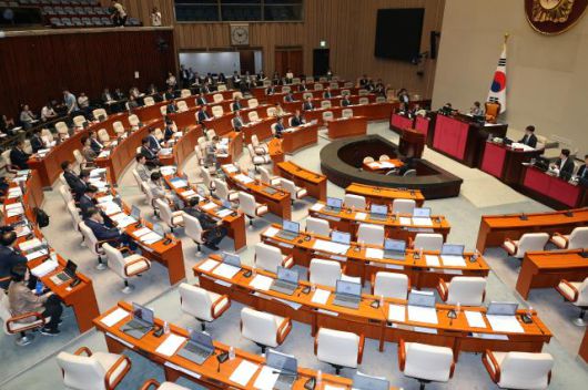30일 국회에서 열린 예산결산특별위원회 전체회의에서 퇴장한 국민의힘 의원들의 자리가 비어 있다. [사진=연합뉴스] |