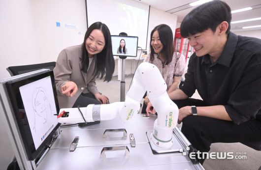 전 세계적으로 인공지능(AI) 열풍이 불면서 우리나라도 국가적으로 AI 기술을 활용한 산업에 지원이 있을 것으로 예상된다. 또 국민적인 관심으로 AI 체험관이나 전시도 늘고 있다. 30일 서울 마포구 서울AI재단 서울AI스마트시티센터에서 관람객이 AI 드로잉 로봇을 체험하고 있다. 박지호기자 jihopress@etnews.com [Copyright © 전자신문. 무단전재-재배포금지]