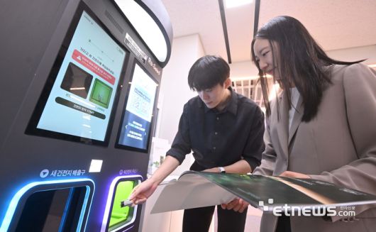 전 세계적으로 인공지능(AI) 열풍이 불면서 국내서도 AI 기술을 접할 수 있는 체험공간이 늘고 있다. 30일 서울 마포구 서울AI재단 서울AI스마트시티센터에서 관람객이 인공지능 폐건전지 수거함을 체험하고 있다. 박지호기자 jihopress@etnews.com [Copyright © 전자신문. 무단전재-재배포금지]
