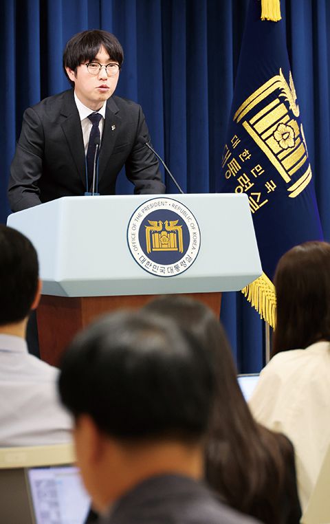 하정우 AI미래기획수석이 6월 19일 용산 대통령실에서 이공계특별법 관련 브리핑을 하고 있다. <사진 연합뉴스> |