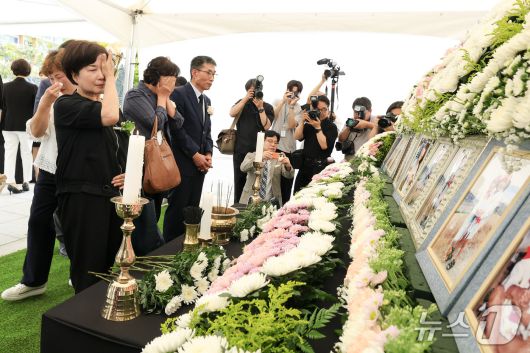 (화성=뉴스1) 이윤희 기자 = '씨랜드 화재 참사 희생자 26주기 추모제'가 30일 경기 화성시 서신면 궁평관광지 인근에 조성된 추모공원에서 열렸다.