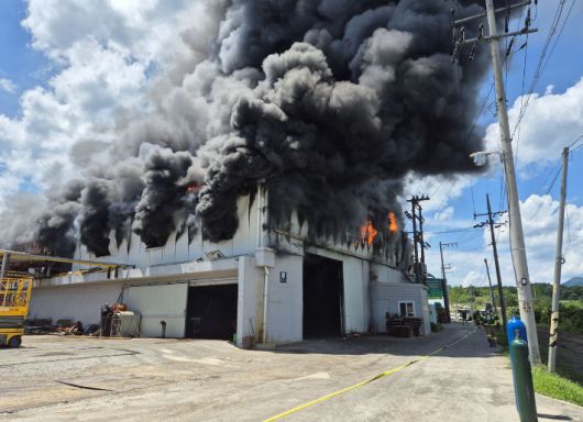 경북 영천 폐기물 공장 화재 약 4시간 만에 초진…건물 3개동 전소