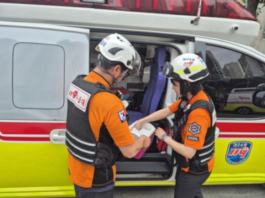 대구시는 오는 9월 30일까지 구급차 63대와 대원 538명으로 구성된 폭염구급대를 운영한다고 30일 밝혔다. 또한 모든 차량에는 얼음조끼와 얼음팩, 생리식염수 등을 배치해 현장에서 즉각적인 응급처치가 가능하도록 했다.