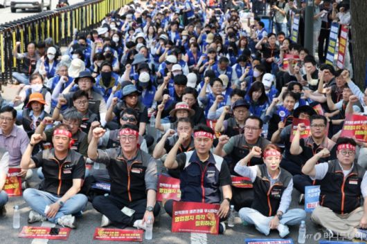 (서울=뉴스1) 허경 기자 = MG손해보험 전직원들이 29일 서울 종로구 금융위원회 앞에서 열린 총파업 선포 결의대회에서 일부영업정지를 규탄하는 구호를 외치고 있다. 2025.5.29/뉴스1 Copyright (C) 뉴스1. All rights reserved. 무단 전재 및 재배포, AI학습 이용 금지. /사진=(서울=뉴스1) 허경 기자 |