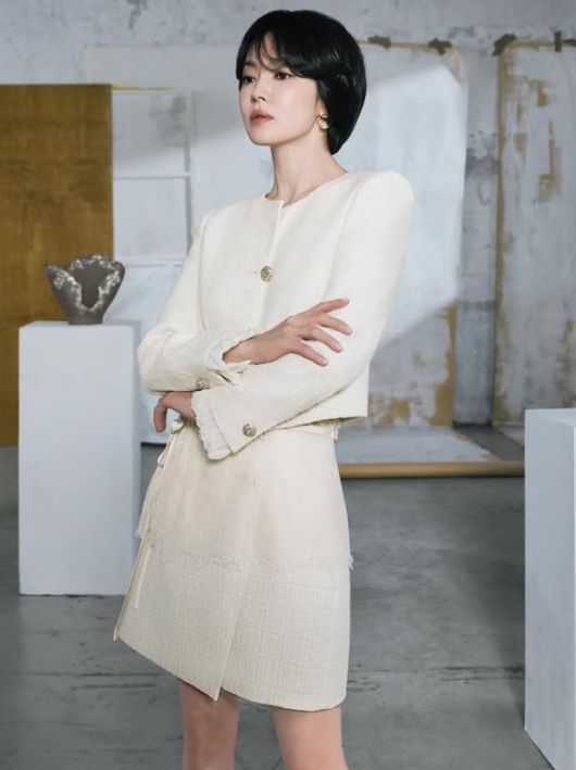 화보 속 송혜교는 짧은 헤어스타일과 깊은 눈빛으로 고혹적인 매력을 발산했다.
