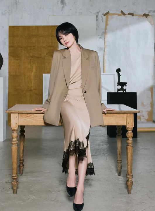 공개된 사진은 여성복 브랜드 미샤(MICHAA)의 2025 프리폴 컬렉션 화보로, 송혜교는 ‘화보 장인’의 면모를 유감없이 발휘했다.