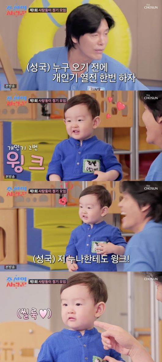 20개월인 아들은 훌쩍 큰 모습으로 눈길을 끌었다. 최성국은 아들에게 ‘깡총깡총’ 개인기를 시키며 팔불출 면모를 뽐냈다. 최성국의 아들은 만세, 윙크, 대답하기 실력을 뽐냈다. 최성국은 어깨가 으쓱하며 “이 정도다”라고 자랑했다.