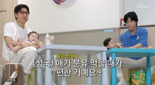 손보승은 "저는 다 아는 것들이었다. 분유 팩이랑 다 제가 썼던 것들. 이유식 싸오는 용기도 다 제가 썼던 것들이고 저는 밥 먹는 게 편한데 뭔가 되게 불편해 보이시더라. 전 밥 편하게 먹는다"라며 자랑했다.