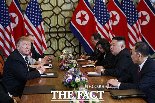 이미 북미 간 협상이 시작됐다는 해석도 나온다. 최근 양국이 주고받는 메시지는 주도권 싸움이라는 것이다. 사진은 지난 2019년 2월 27일 베트남 하노이 메트로폴 호텔에서 열린 제2차 북미정상회담 장면. /AP.뉴시스 |