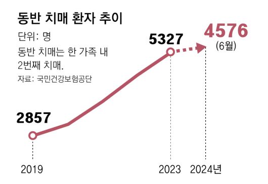 국민 20%가 65세 이상인 초고령사회에 진입하면서 부부가 모두 치매에 걸린 경우도 가파르게 증가하고 있는 것으로 파악됐다. 30일 동아일보가 국민건강보험공단을 통해 확보한 자료에 따르면 한 가족 내 2번째 치매 환자임을 뜻하는 ‘동반 치매’ 환자는 2019년 2857명에서 2023년 5327명으로 늘었다. 4년 새 약 86%가 증가한 것이다. 대다수는 노부부가 함께 치매에 걸린 경우다.