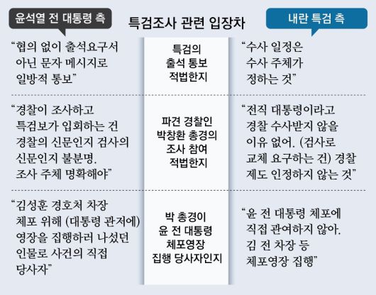 30일 윤 전 대통령 측은 “1일로 예정된 출석기일을 연기해 달라”고 요청했지만 특검은 이를 바로 거부했다. 특검은 윤 전 대통령이 1일에 나오지 않을 경우 이를 출석 불응으로 간주하고 4일 혹은 5일에 재차 출석하라고 통보할 방침이다. 만약 이때도 윤 전 대통령이 불응하면 특검은 강제 구인에 나설 것으로 보인다.