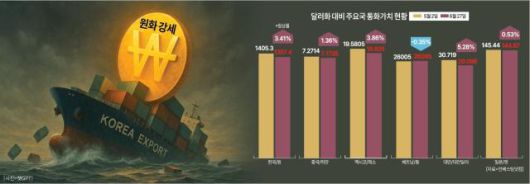 한국은 글로벌 시장에서 중국·베트남·일본과 반도체, 철강 등 주요 제조업 품목에서 직접 경쟁하고 있다. 중국·베트남·일본이 달러 대비 자국 통화 약세를 보인 데 반해 원화만 강세를 보인다는 것은 한국산 제품의 가격경쟁력이 약화되고 있다는 의미다.