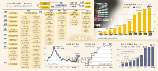 이후에도 카카오는 수많은 계열사를 설립하고 인수하며 사업다각화에 박차를 가했고 2022년에는 자산총액 30조원을 넘어서며 재계 순위 15위권에 진입했다. 2023년에는 계열사 수가 147개로 정점을 찍으며 ‘카카오 공화국’이라는 표현이 등장하기도 했다. 이는 국내 대기업 집단 중에서도 이례적으로 빠른 증가세였다.