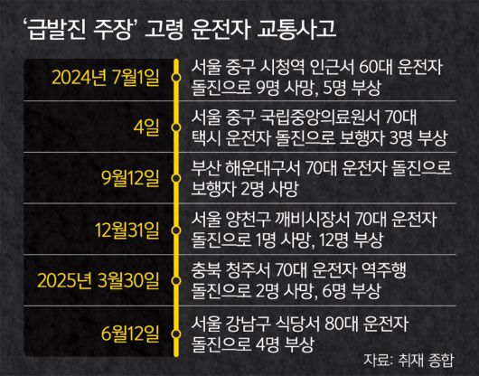지난해 7월 서울 한복판에서 고령 운전자의 역주행으로 보행자 9명이 숨진 ‘시청역 차량 돌진 참사’가 1주기를 맞았다. 참사 발생 1년 새 고령 운전자에 의한 유사한 사고가 잇따르면서 면허관리체계를 강화해야 한다는 지적이 나오고 있다. 사문화된 면허갱신절차로 사고 위험성이 높은 운전자를 방치하면서 사고를 막지 못했다는 평가다.