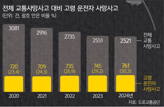 30일 도로교통법에 따르면 75세 이상 운전자는 3년마다 운전면허증을 갱신해야 한다. 75세 미만은 10년마다 갱신해야 하는데 형식적 절차에 그친다는 목소리가 높다. 갱신은 자가신고서를 작성한 뒤 2년 이내의 건강검진 자료를 제출하는데, 시청역 참사에서처럼 가속페달을 브레이크로 오인해 밟는 등의 사례를 막을 만한 장치는 부족하다는 평가다.